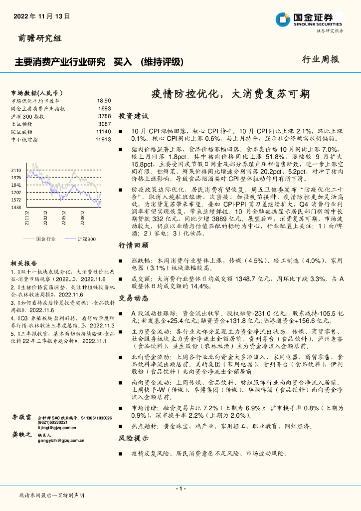 国金证券:主要消费产业行业周报:疫情防控优化,大消费复苏可期.pdf