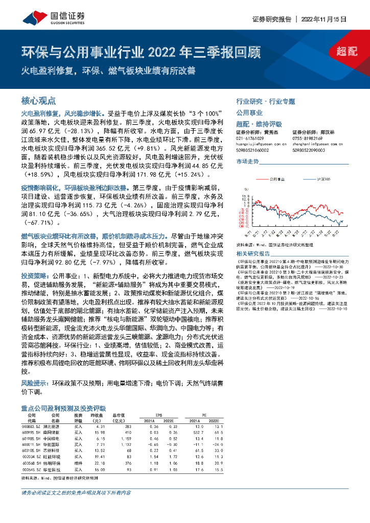 国信证券:环保与公用事业行业2022年三季报回顾:火电盈利修复,环保、燃气板块业绩有所改善.pdf