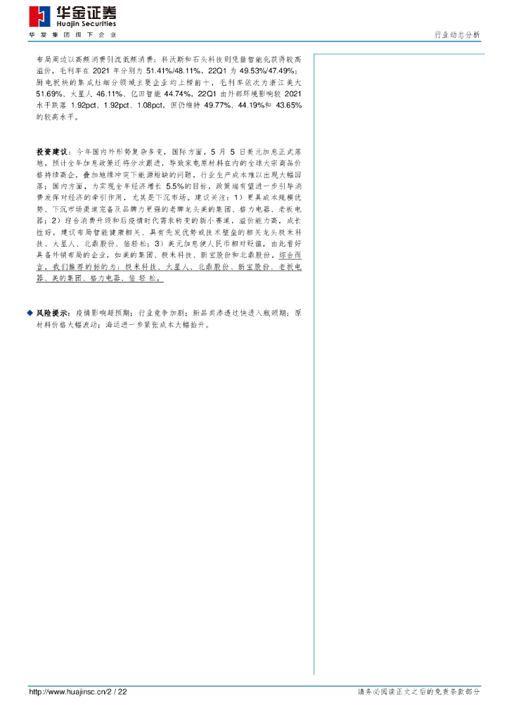 华金证券:家电2021及22Q1行业综述:营收向好盈利承压,关注老牌龙头及高新赛道.pdf