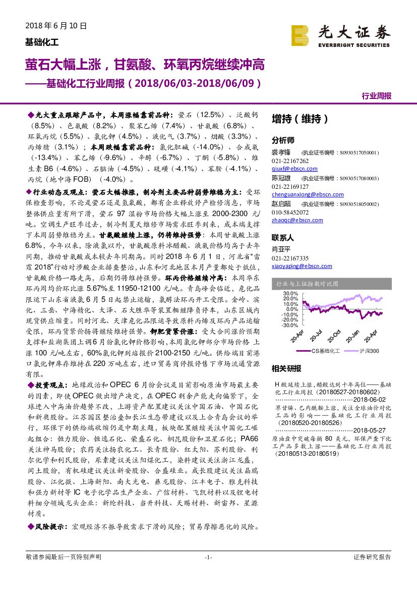 光大证券:基础化工行业周报:萤石大幅上涨,甘氨酸、环氧丙烷继续冲高.pdf