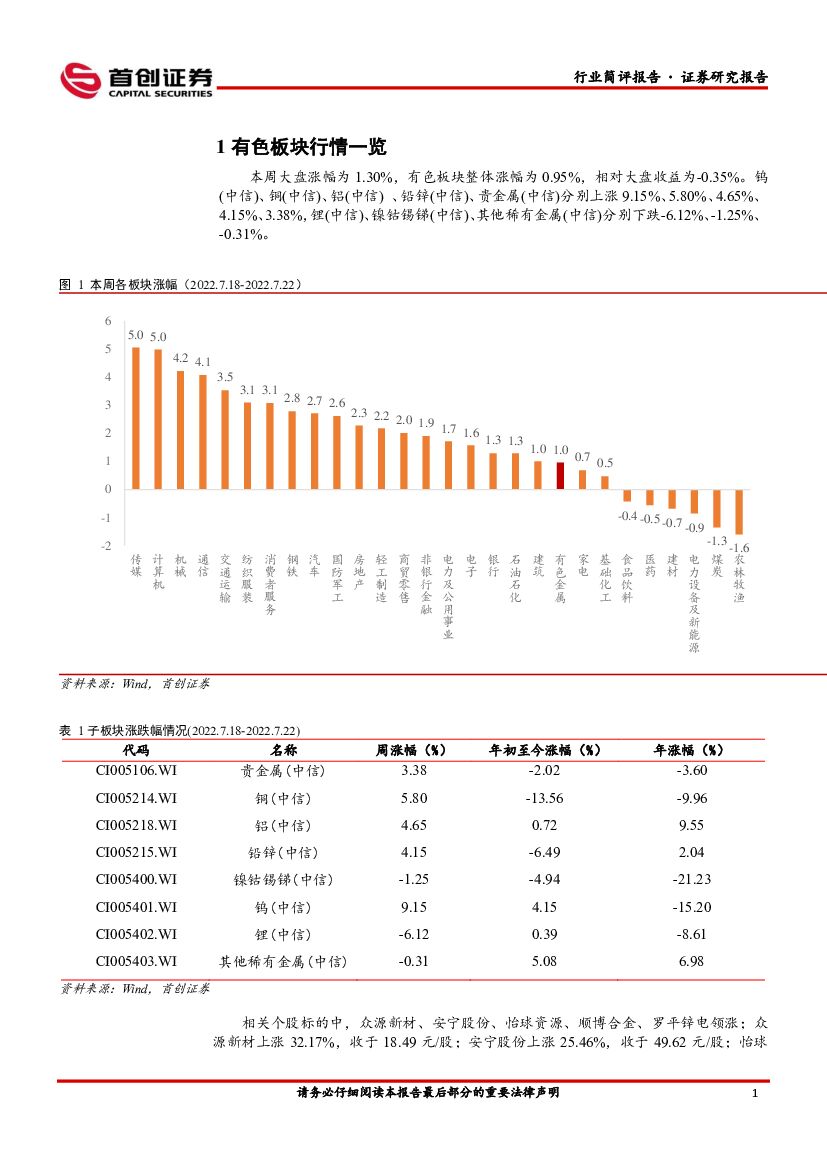 首创证券:有色行业周报:美联储加息预期降温 工业金属价格有望修复性反弹.pdf