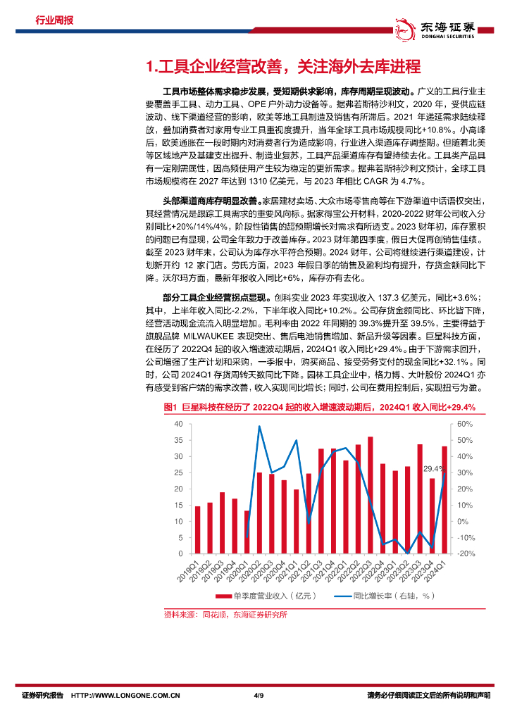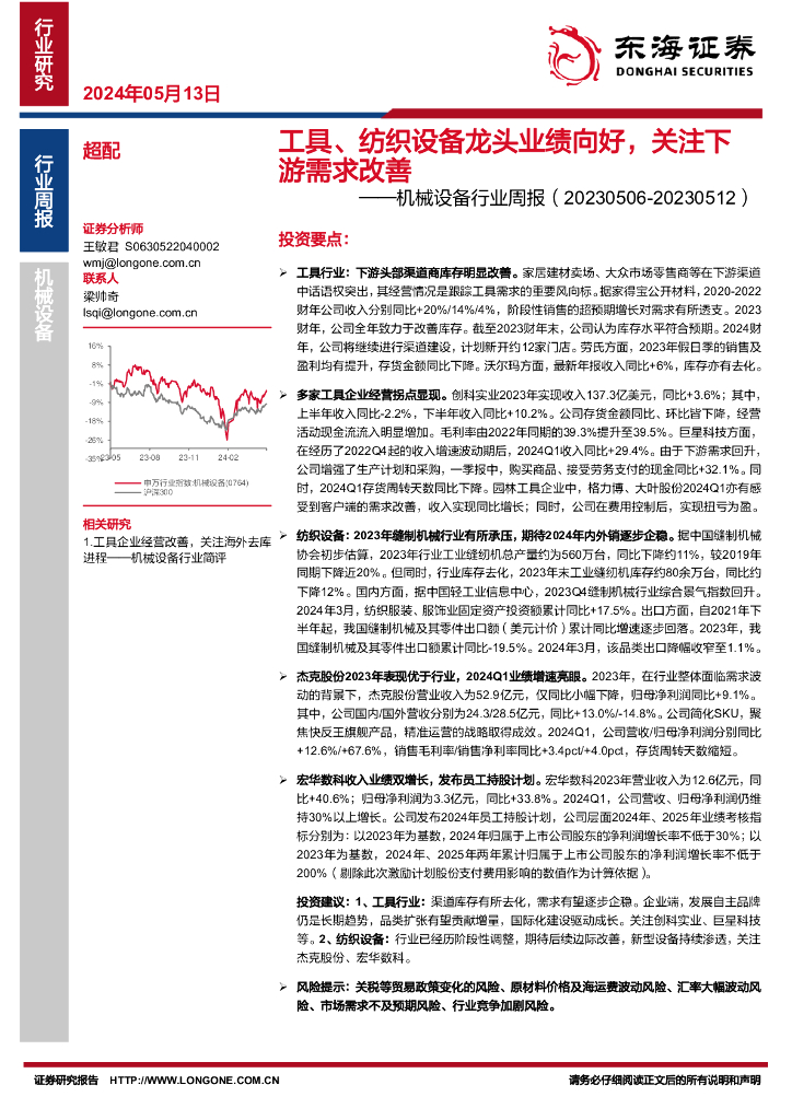 东海证券:机械设备行业周报:工具、纺织设备龙头业绩向好,关注下游需求改善.pdf