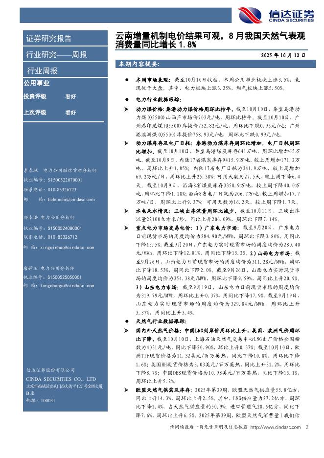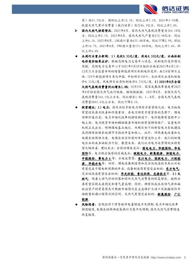 信达证券:公用事业行业—电力天然气周报:云南增量机制电价结果可观,8月我国天然气表观消费量同比增长1.8%.pdf