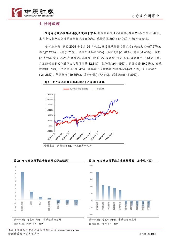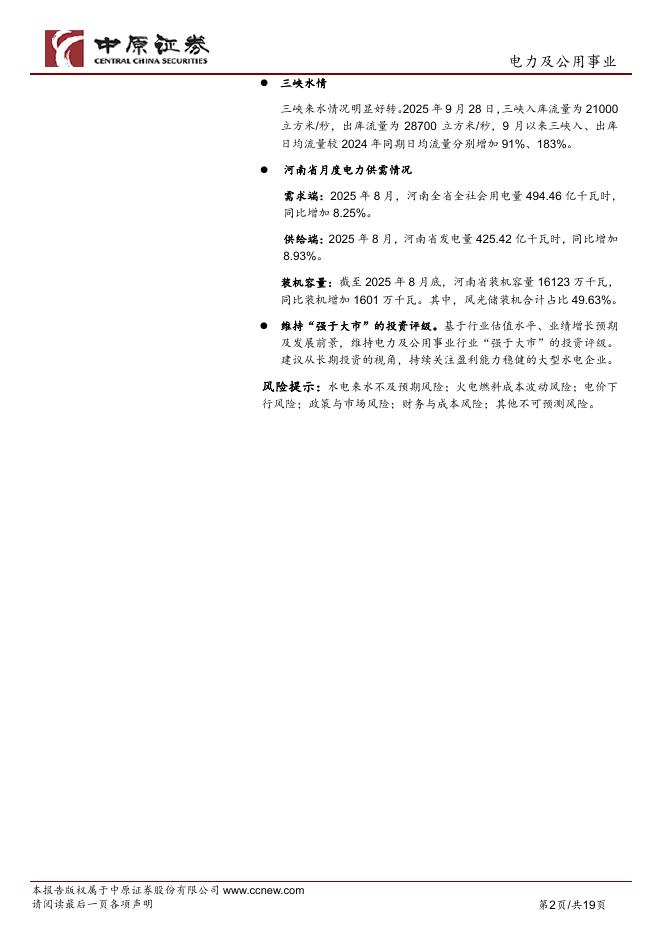 中原证券:电力及公用事业行业月报:8月用电量再度突破万亿千瓦时,9月三峡来水情况明显好转.pdf