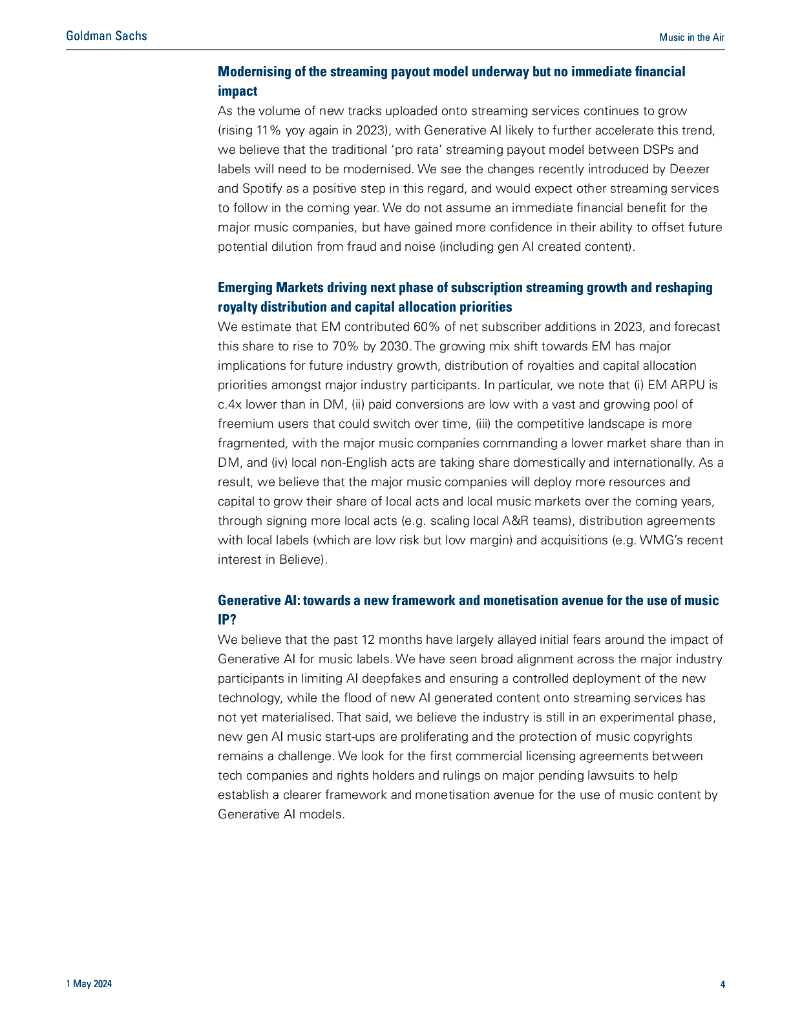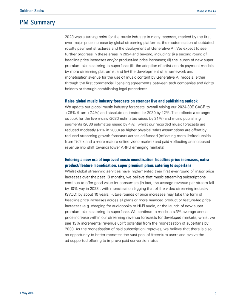 高盛:2024空中音乐报告:关注货币化、新兴市场和人工智能; 更新全球音乐产业预测(英文版).pdf