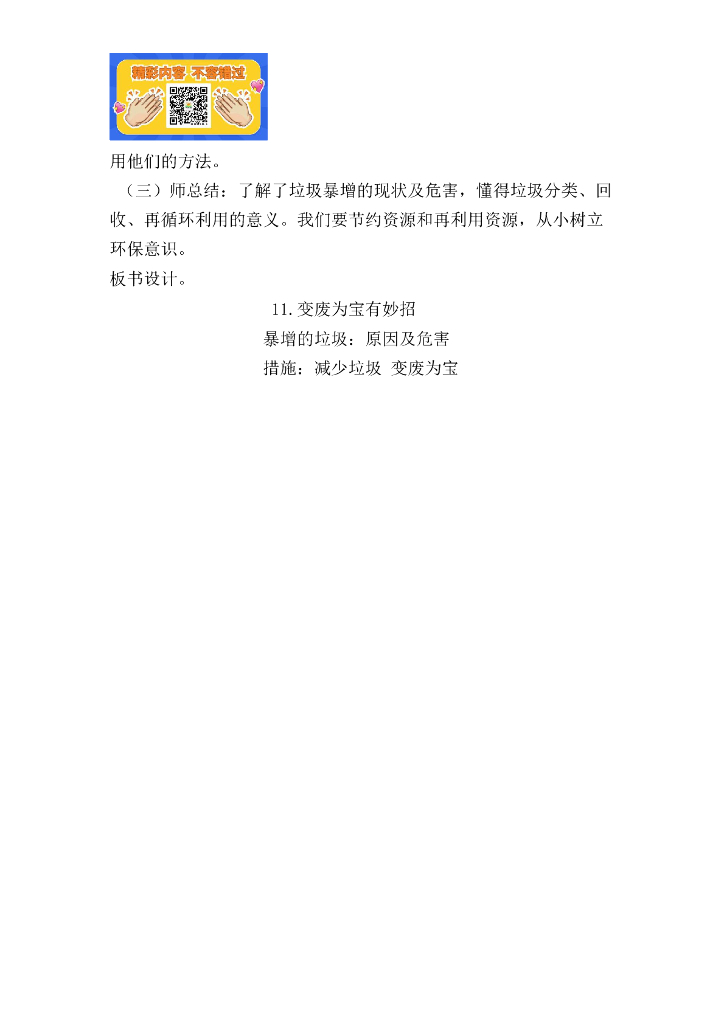 道德与法制11 变废为宝有妙招 (2课时) 人教.doc