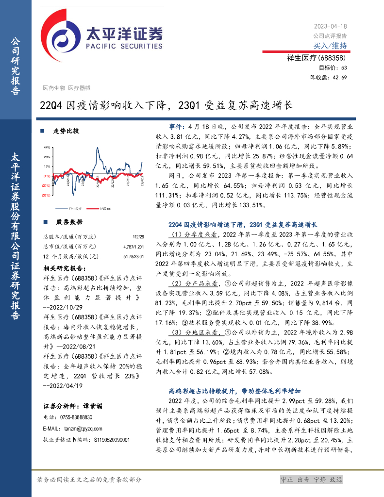 太平洋证券:祥生医疗(688358)-22Q4因疫情影响收入下降,23Q1受益复苏高速增长.pdf