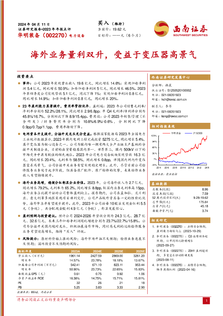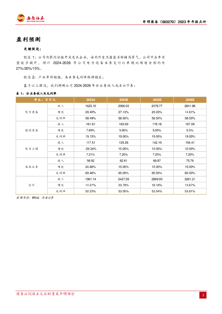 西南证券:华明装备(002270)-海外业务量利双升,受益于变压器高景气.pdf