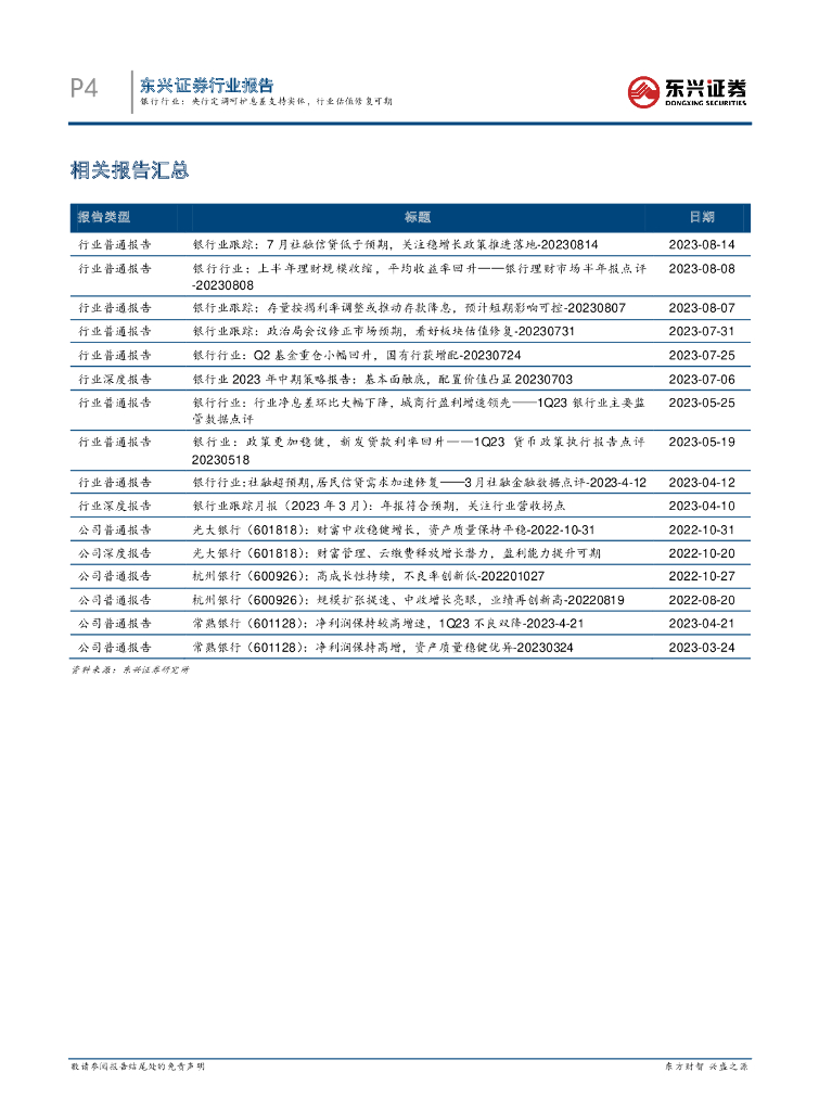 东兴证券:2Q23货币政策执行报告点评:银行行业:央行定调呵护息差支持实体,行业估值修复可期.pdf