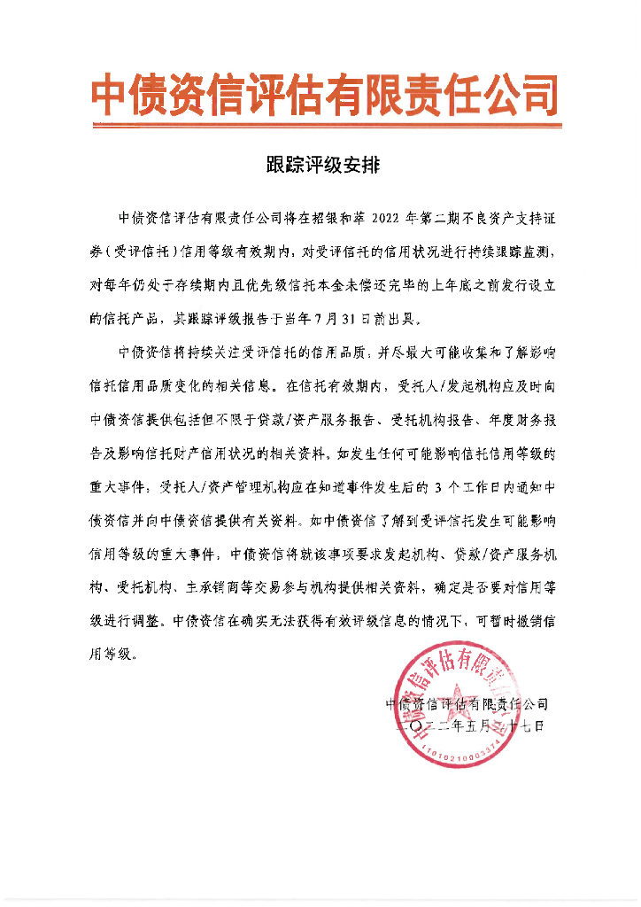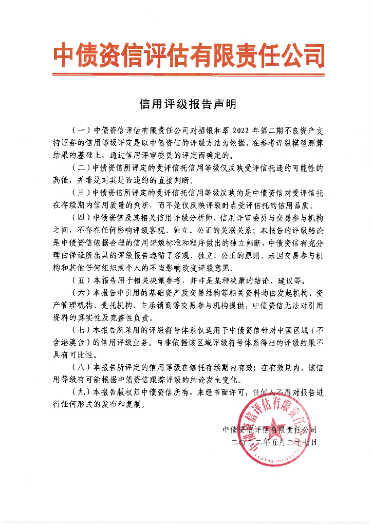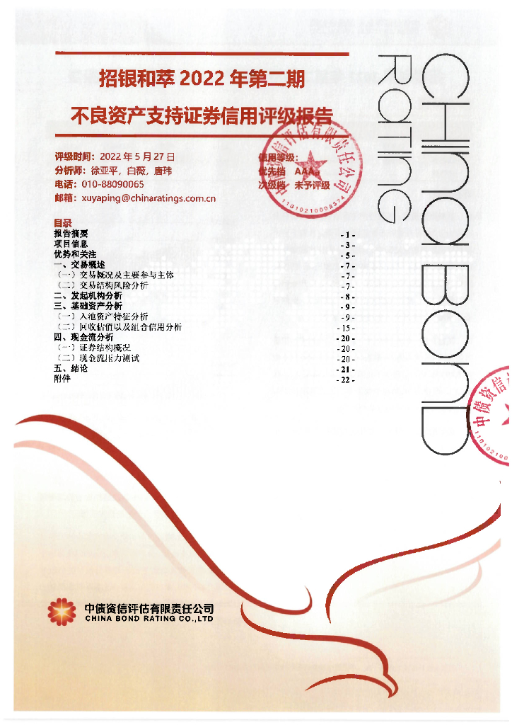 中债资信:招银和萃2022年第二期不良资产支持证券售前评级报告及持续跟踪评级说明.pdf