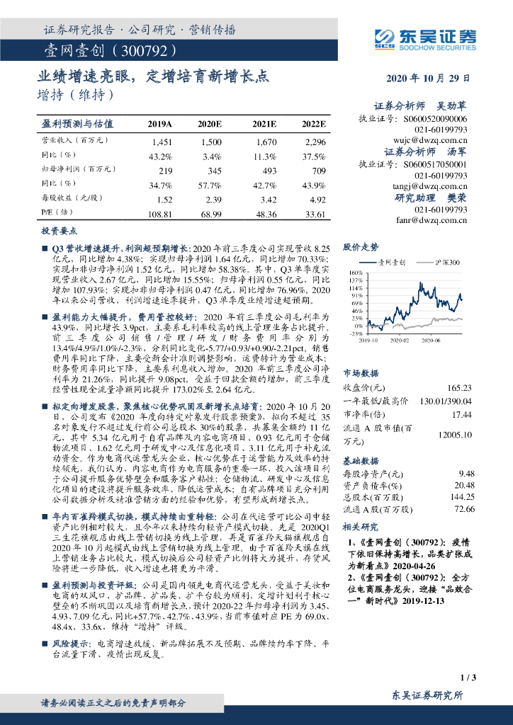 东吴证券:壹网壹创(300792)-业绩增速亮眼,定增培育新增长点.pdf