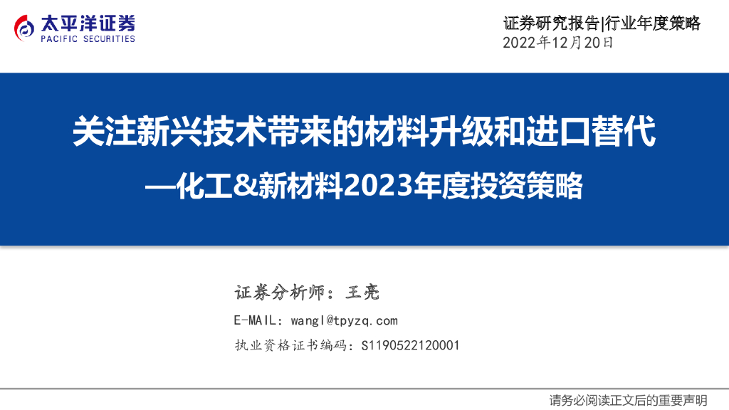 太平洋证券:化工&新材料2023年度投资策略:关注新兴技术带来的材料升级和进口替代.pdf