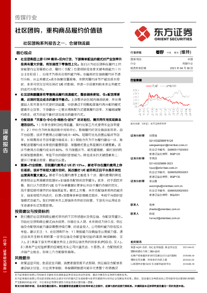 东方证券:传媒行业:社区团购系列报告之一,仓储物流篇-社区团购,重构商品履约价值链.pdf