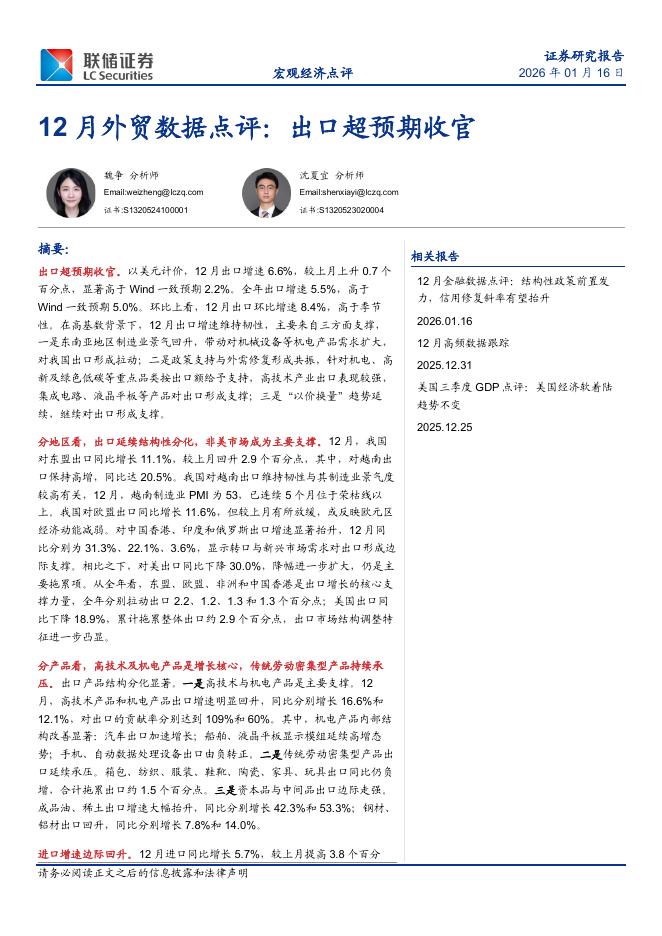 联储证券:12月外贸数据点评:出口超预期收官-260127.pdf