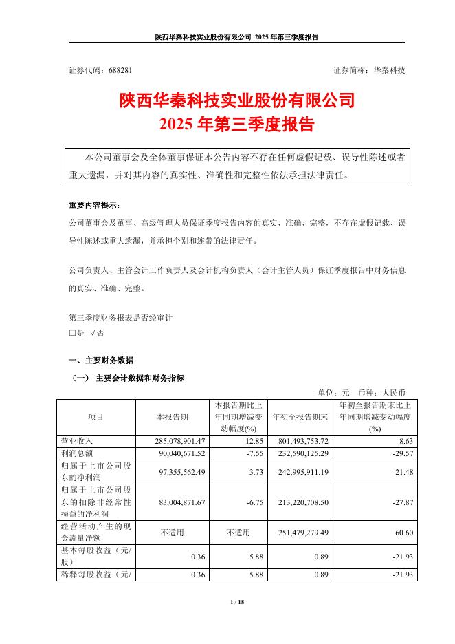 688281-华秦科技:2025年第三季度报告.pdf