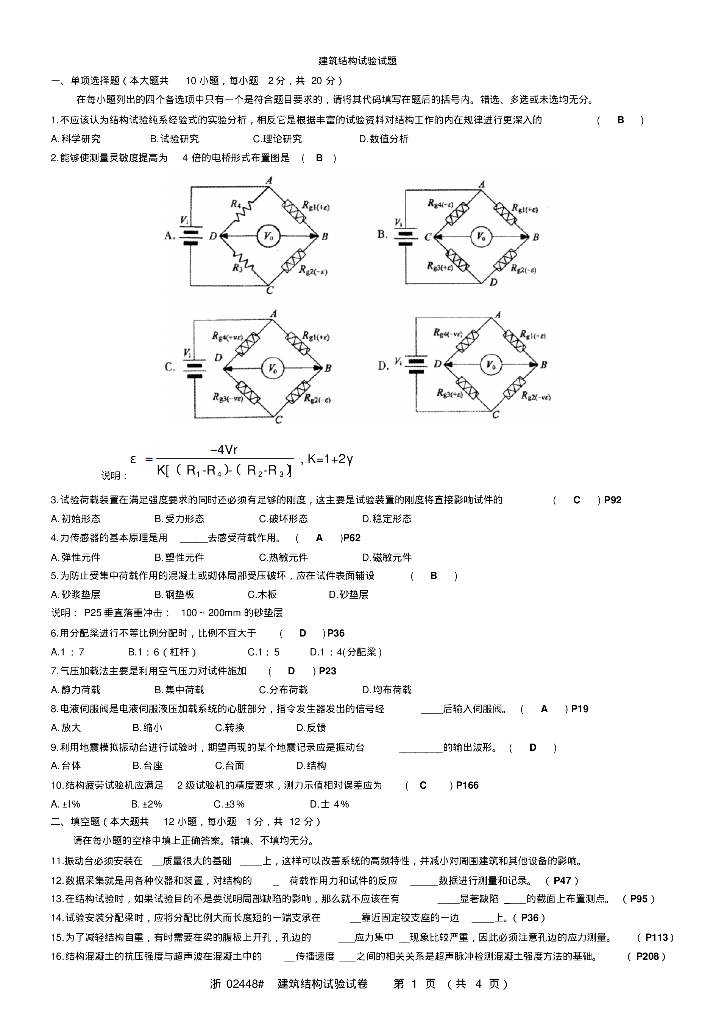 建筑结构试验试题和答案.pdf