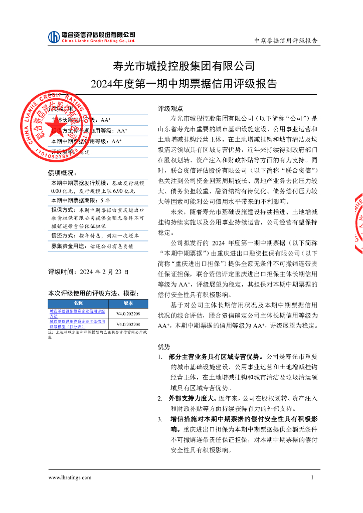 联合资信:寿光市城投控股集团有限公司2024年度第一期中期票据信用评级报告.pdf