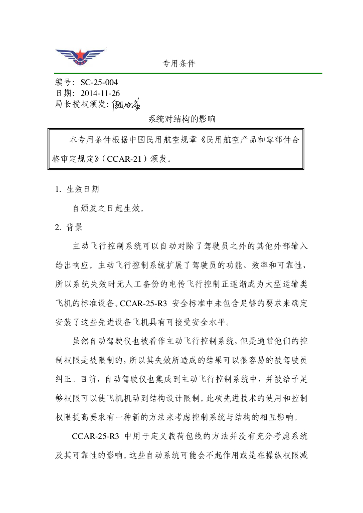 ARJ21-700 型飞机《系统对结构的影响》专用条件.pdf