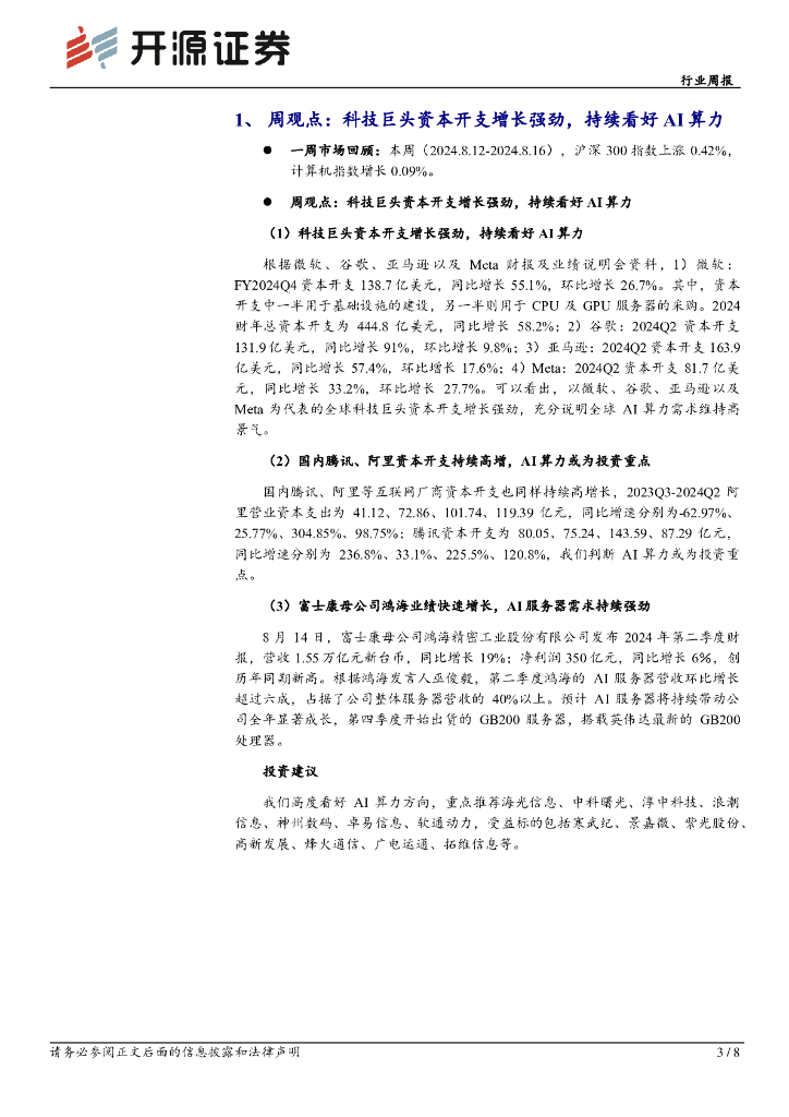 开源证券:计算机行业周报:周观点:科技巨头资本开支增长强劲,持续看好AI算力.pdf