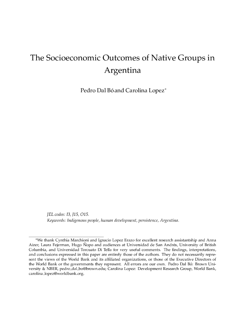 世界银行:阿根廷土著群体的社会经济成果(英文版).pdf