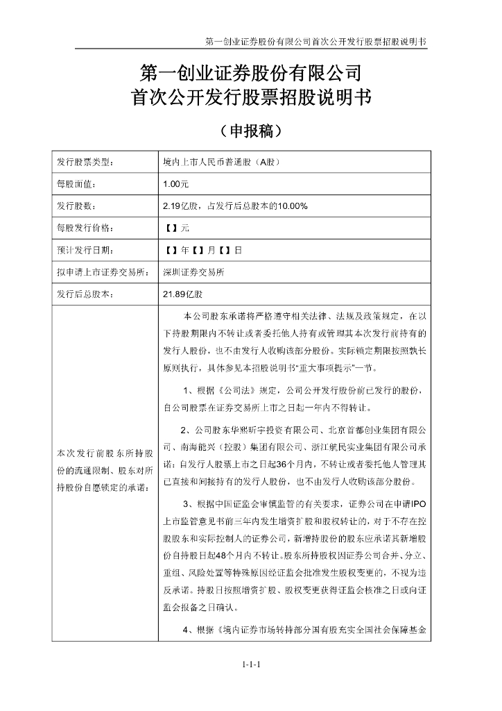 第一创业证券股份有限公司深交所主板IPO上市招股说明书.pdf