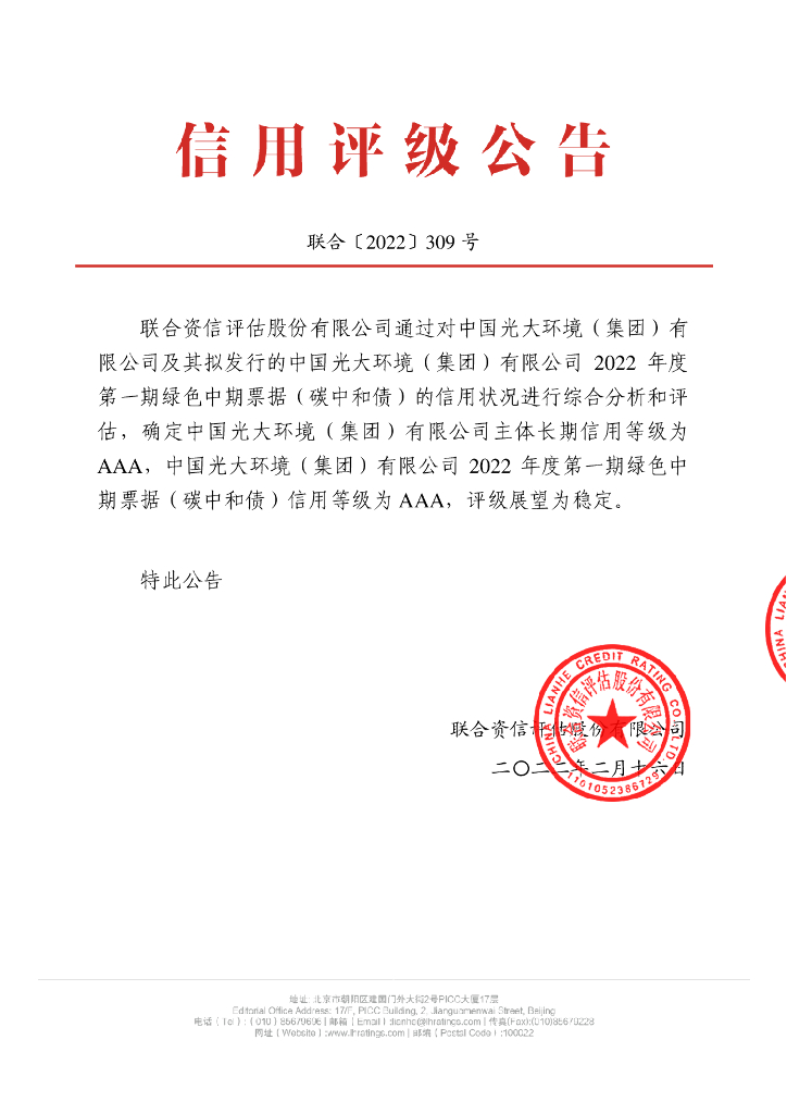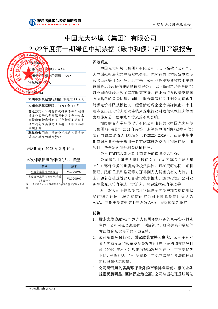 联合资信:中国光大环境(集团)有限公司2022年度第一期绿色中期票据(碳中和债)信用评级报告.pdf