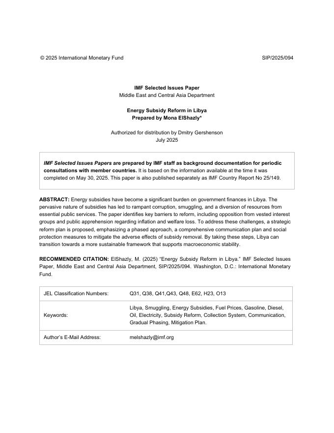 国际货币基金组织:利比亚能源补贴改革:利比亚(英文版).pdf