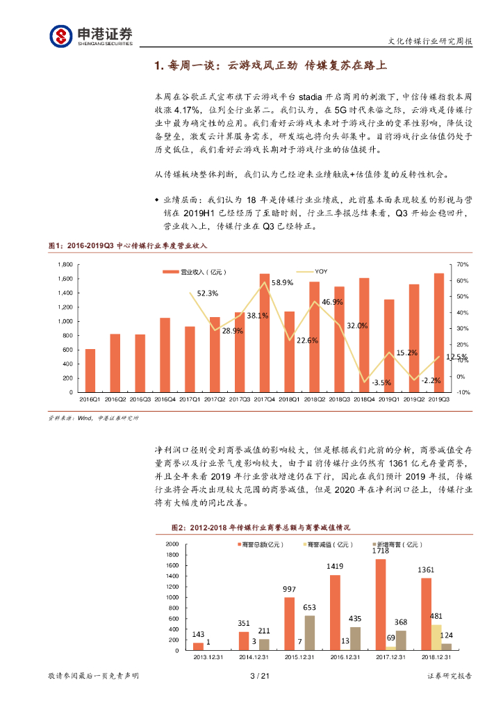 申港证券:文化传媒行业研究周报:云游戏风正劲 传媒复苏在路上.pdf