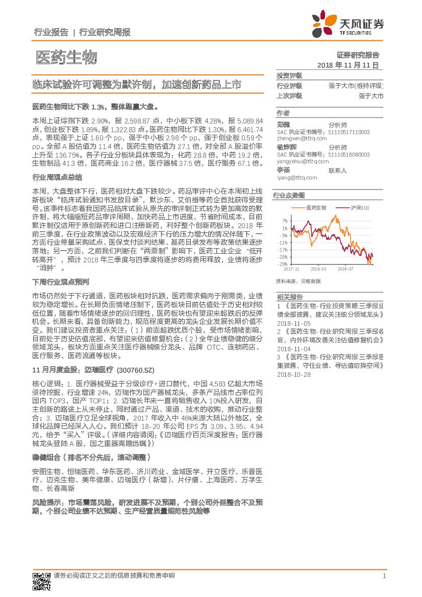 天风证券:医药生物行业研究周报:临床试验许可调整为默许制,加速创新药品上市.pdf