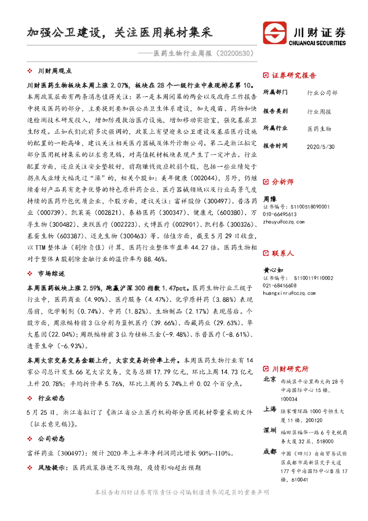 川财证券:医药生物行业周报:加强公卫建设,关注医用耗材集采.pdf