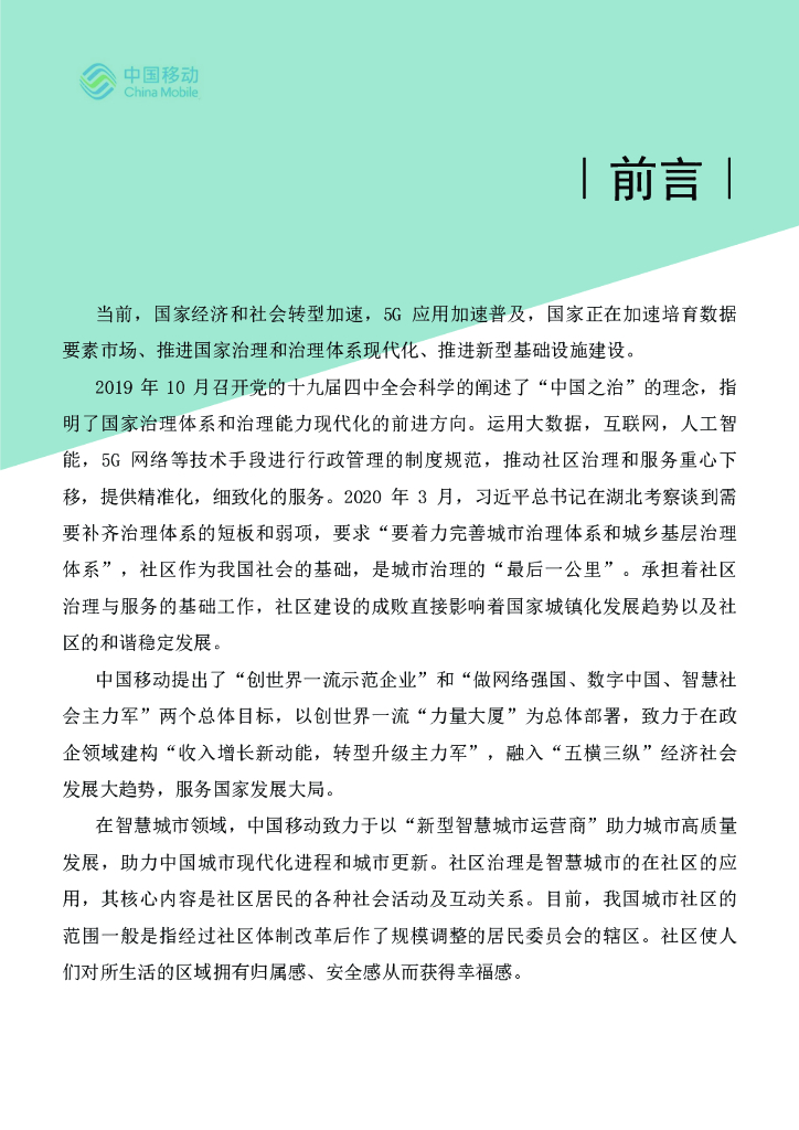 中国移动:5G新型智慧城市白皮书(2021版)社区治理数字化分册.pdf