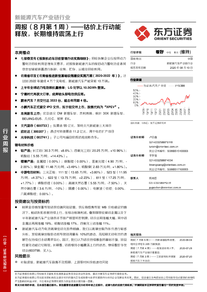 东方证券:新能源汽车产业链行业周报(8月第1周):钴价上行动能释放,长期维持震荡上行.pdf