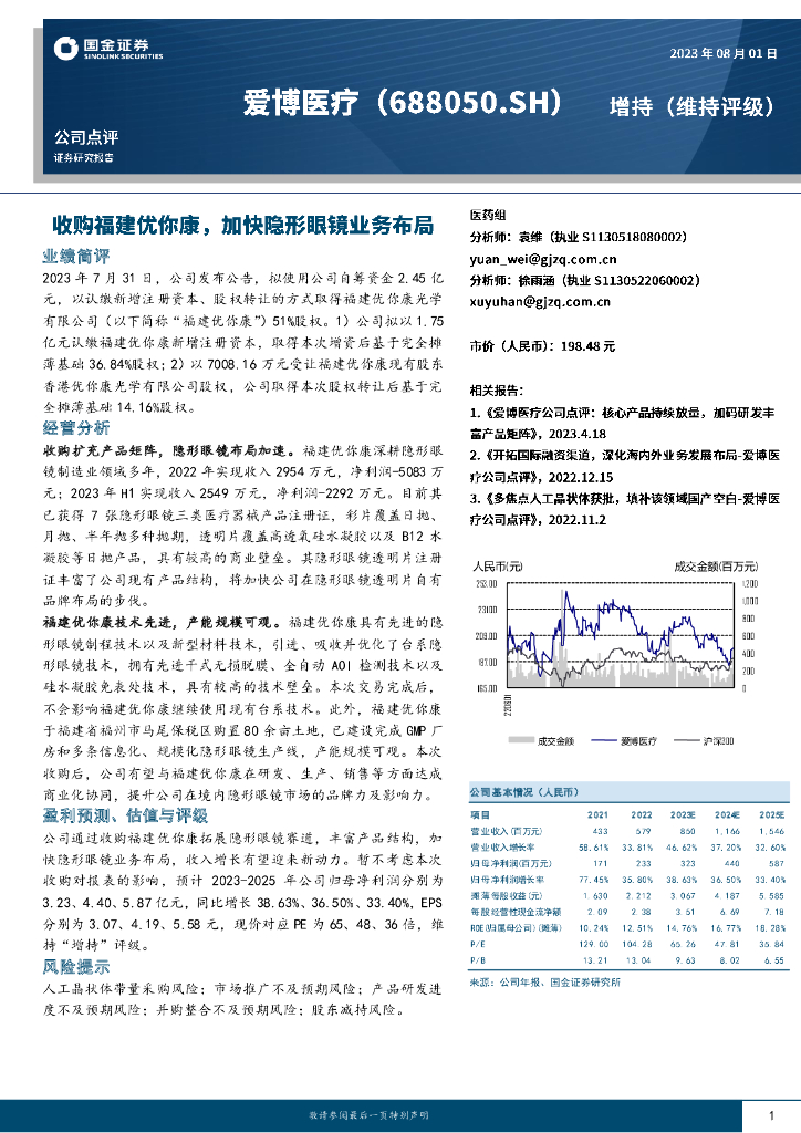 国金证券:爱博医疗(688050)-收购福建优你康,加快隐形眼镜业务布局.pdf