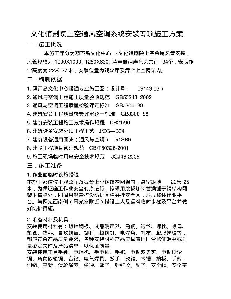 葫芦岛文化馆剧院上空通风空调系统安装专项施工方案.pdf