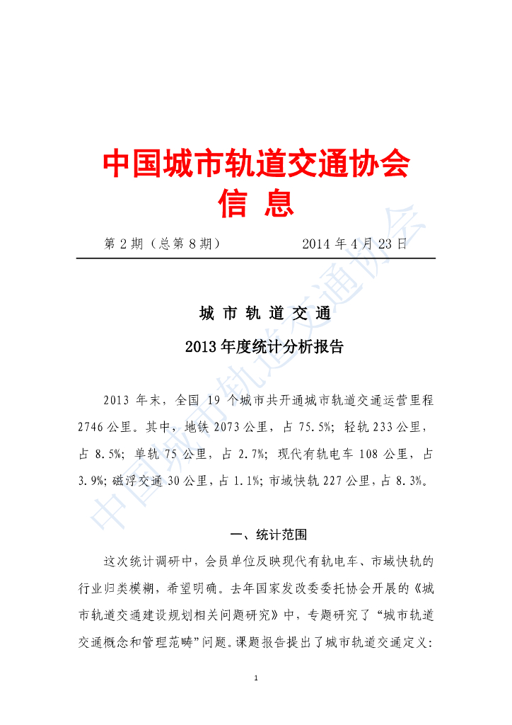 中国城市轨道交通协会:城市轨道交通2013年度统计和分析报告.pdf