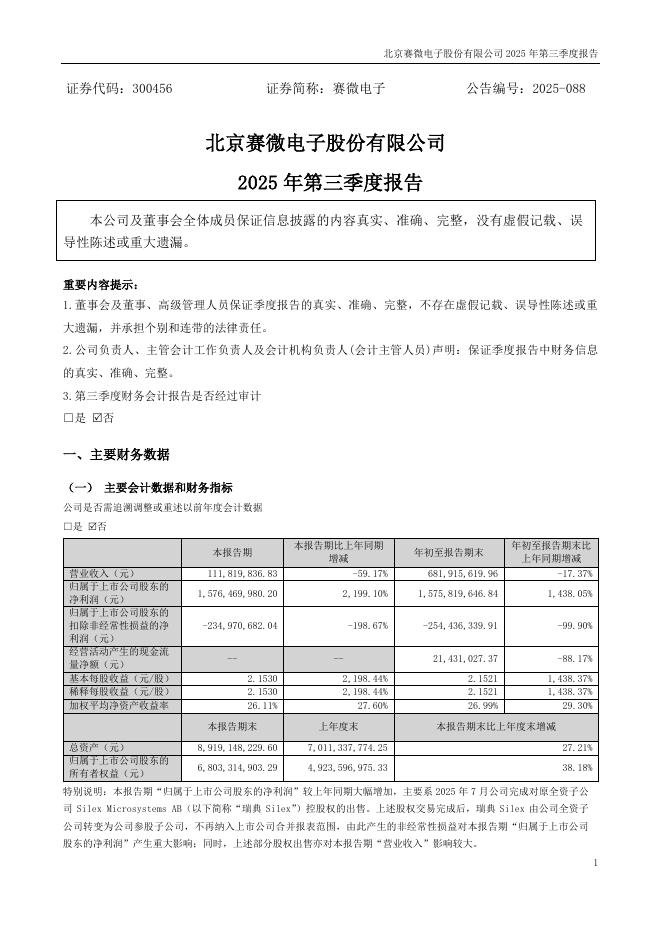 300456-赛微电子:2025年三季度报告.pdf