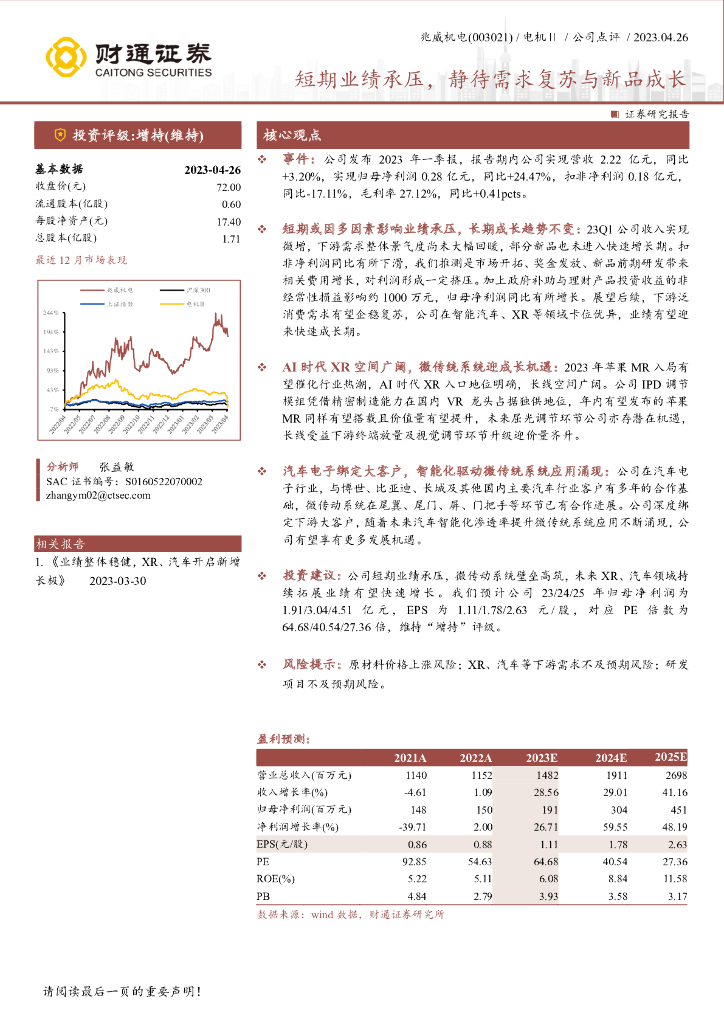 财通证券:兆威机电(003021)-短期业绩承压,静待需求复苏与新品成长.pdf