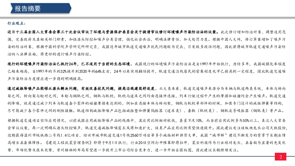 太平洋证券:建筑周观点:人大审议修订环境噪声污染防治法议案,轨交减振降噪受重视,关注天铁股份.pdf