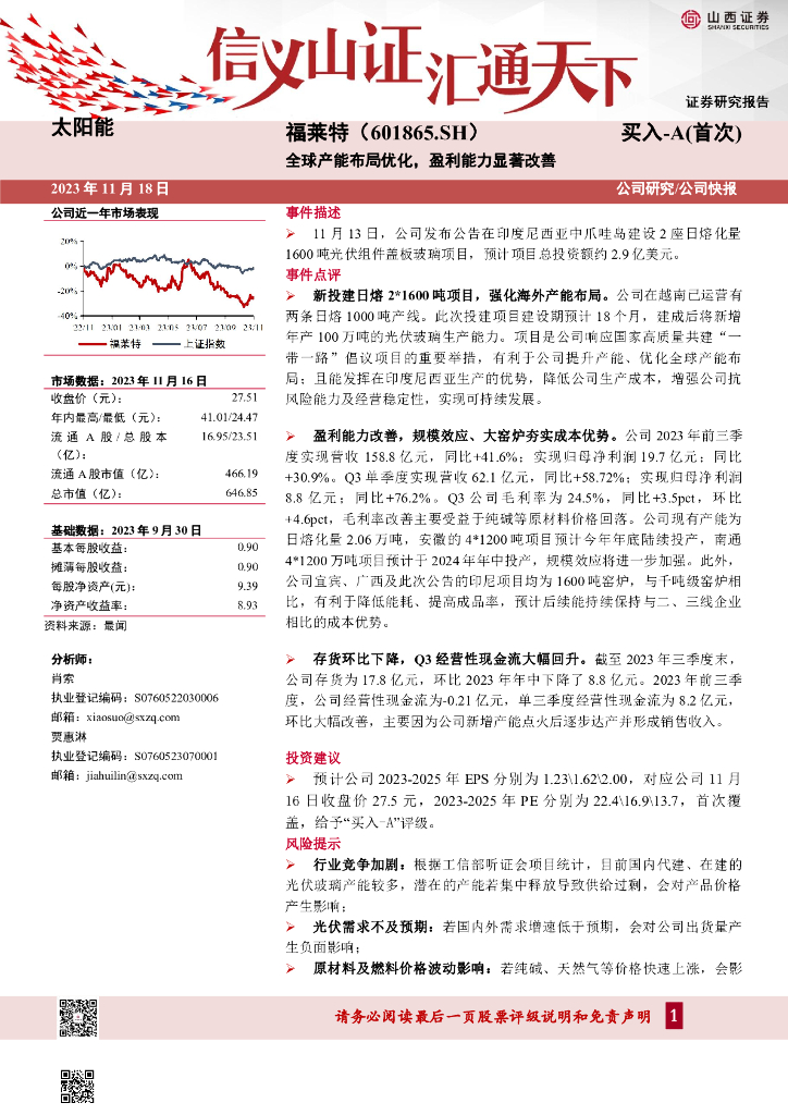 山西证券:福莱特(601865)-全球产能布局优化,盈利能力显著改善.pdf