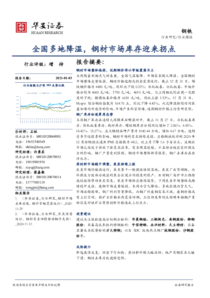 华安证券:钢铁行业周报:全国多地降温,钢材市场库存迎来拐点.pdf