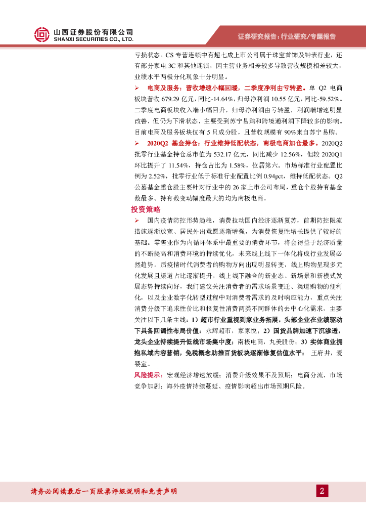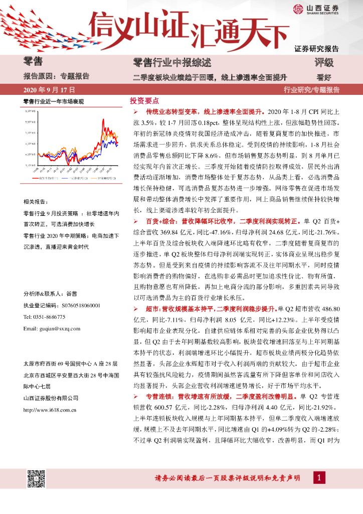 山西证券:零售行业中报综述:二季度板块业绩趋于回暖,线上渗透率全面提升.pdf
