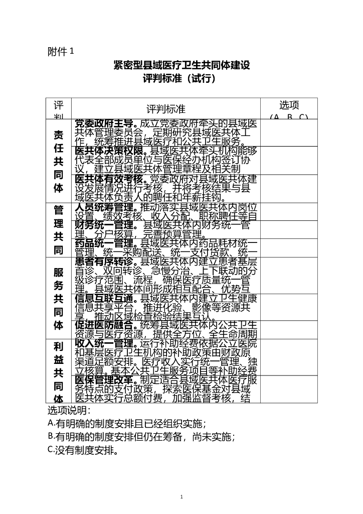 国卫办基层:紧密型县域医疗卫生共同体建设评判标准(试行).doc