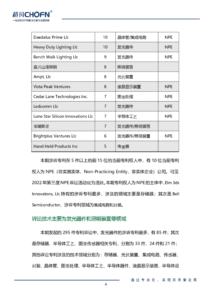 超凡CHOFN:2022年7-9月半导体领域全球专利侵权诉讼解析报告.pdf