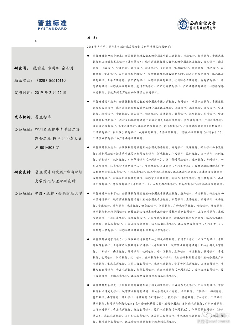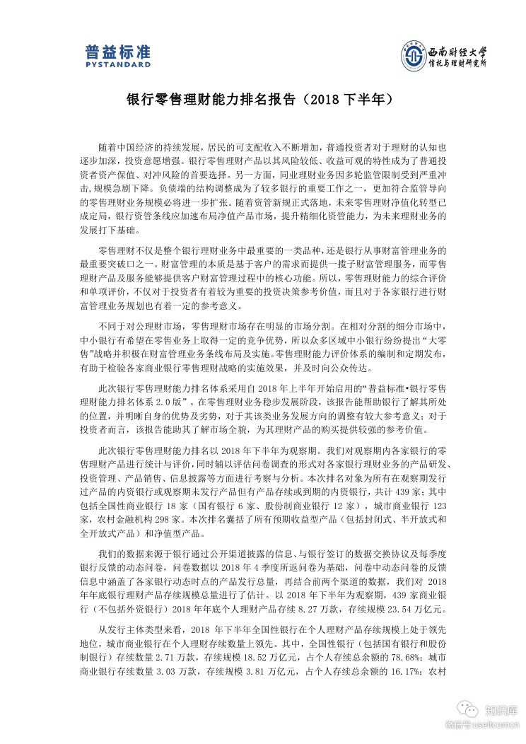 普益标准:银行零售理财能力排名报告(2018下半年).pdf