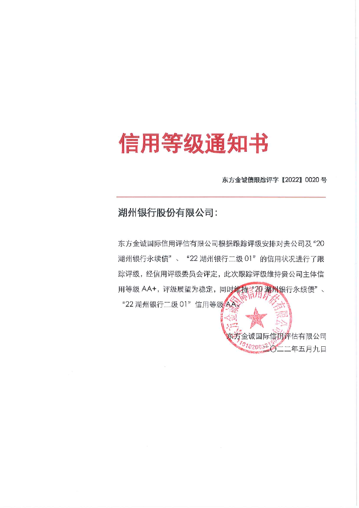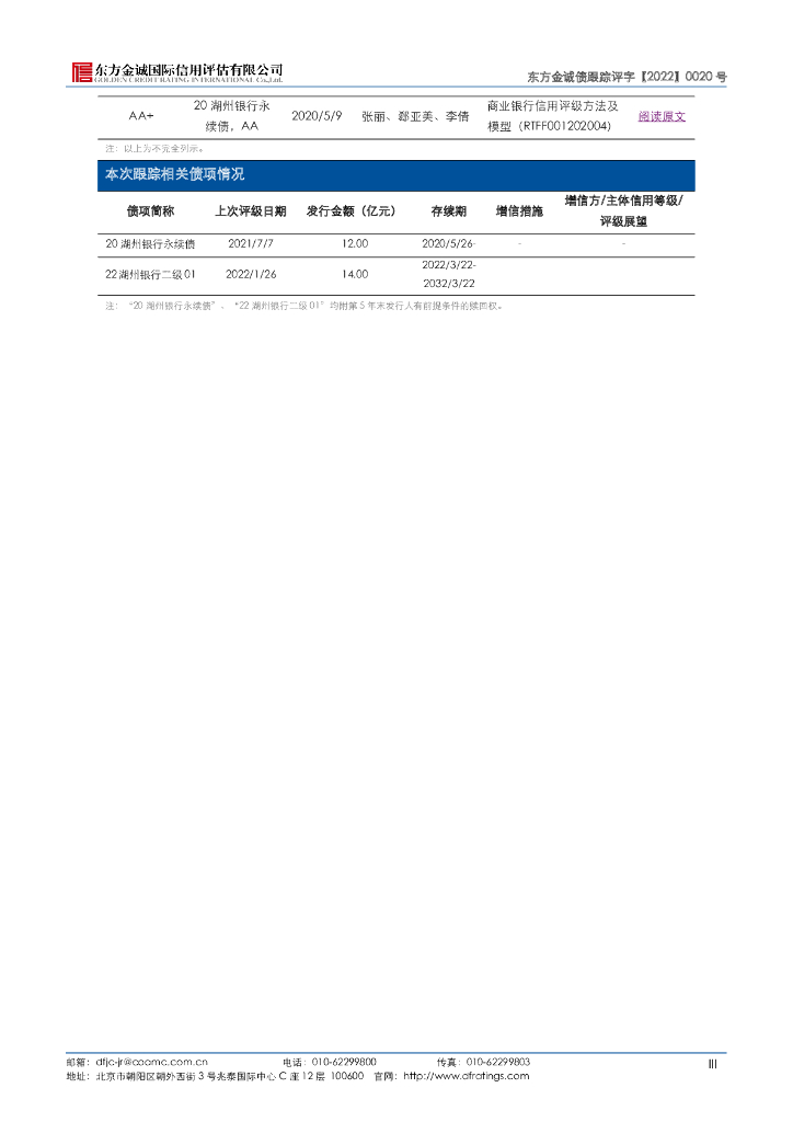 东方金诚:湖州银行股份有限公司主体及相关债项2022年度跟踪评级报告.pdf