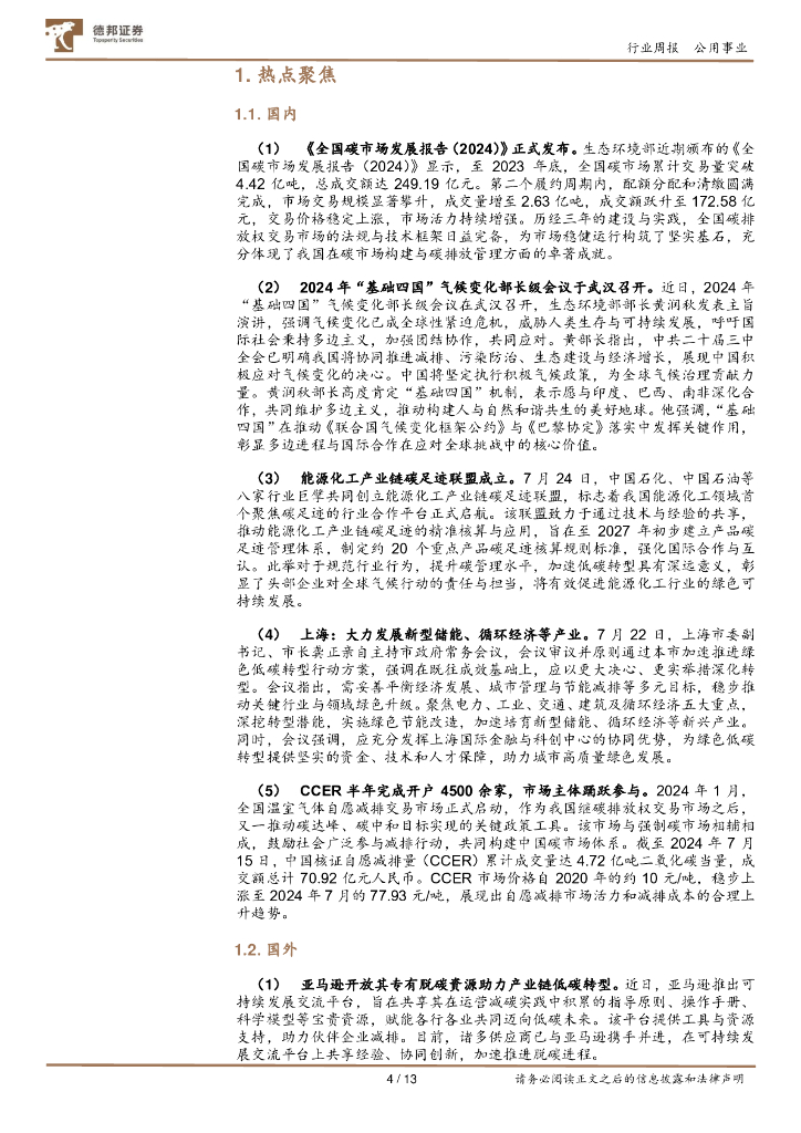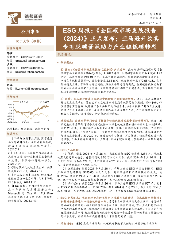 德邦证券:公用事业行业ESG周报:《全国碳市场发展报告(2024)》正式发布;亚马逊开放其专有脱碳资源助力产业链低碳转型.pdf