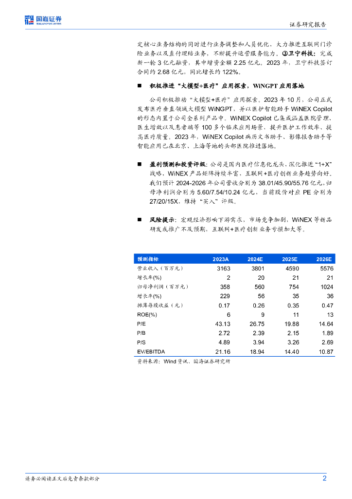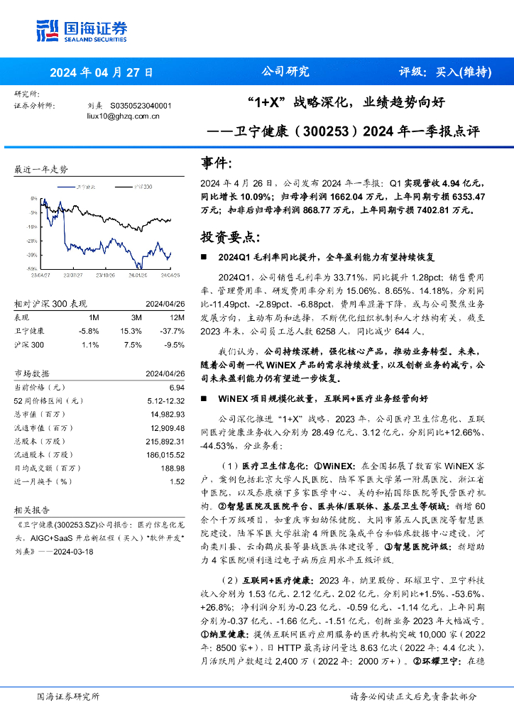 国海证券:卫宁健康(300253)-2024年一季报点评:“1+X”战略深化,业绩趋势向好.pdf