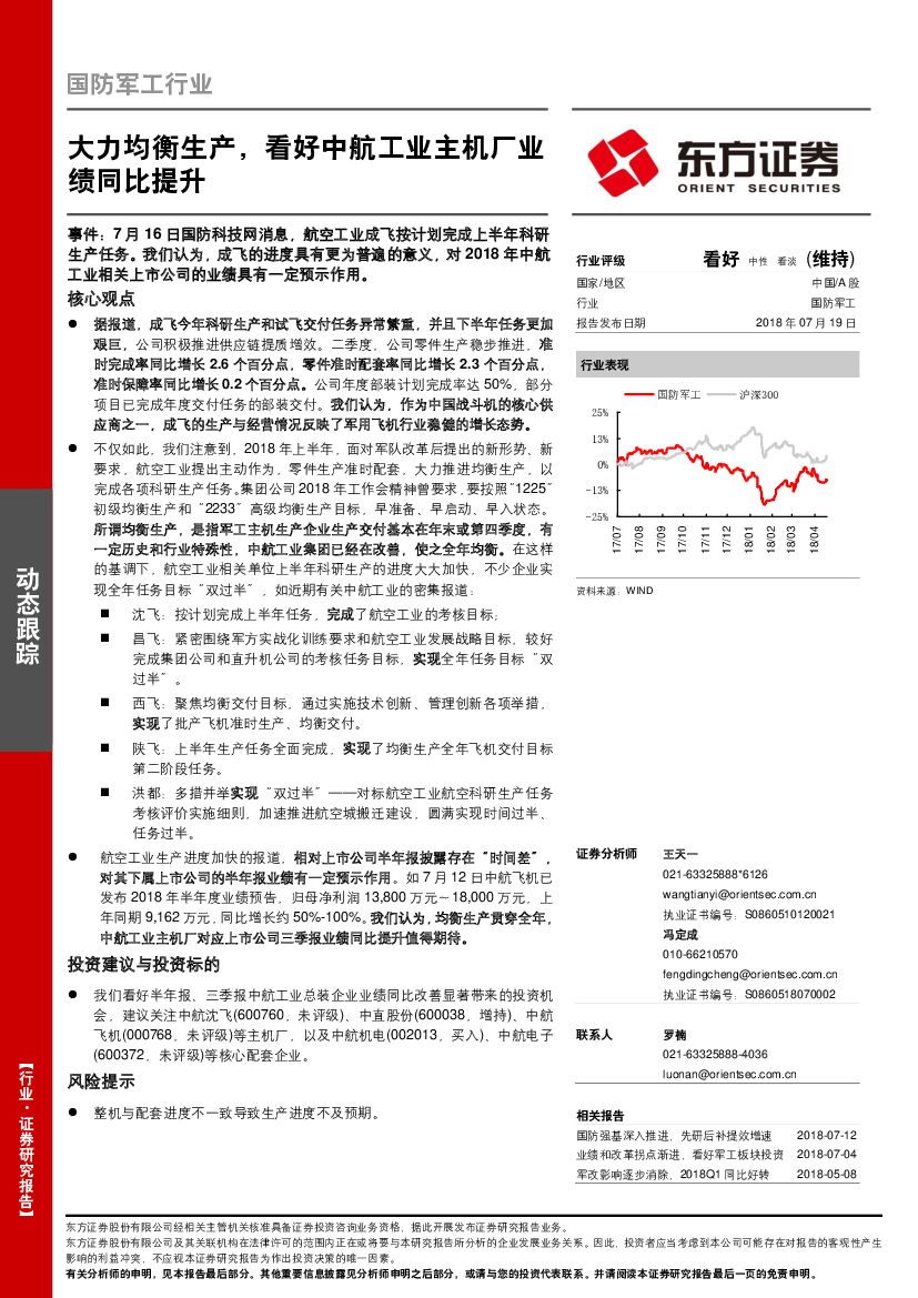东方证券:国防军工行业动态跟踪:大力均衡生产,看好中航工业主机厂业绩同比提升.pdf
