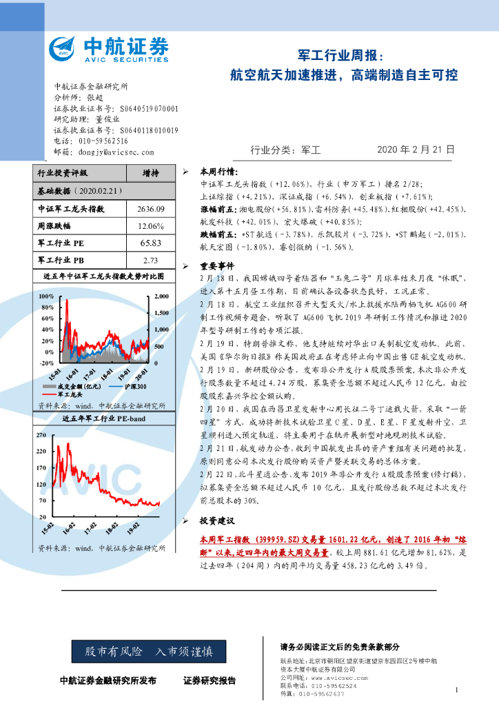 中航证券:军工行业周报:航空航天加速推进,高端制造自主可控.pdf