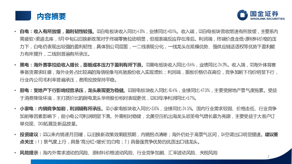 国金证券:家电行业2024三季报总结:内销筑底,外销景气延续.pdf